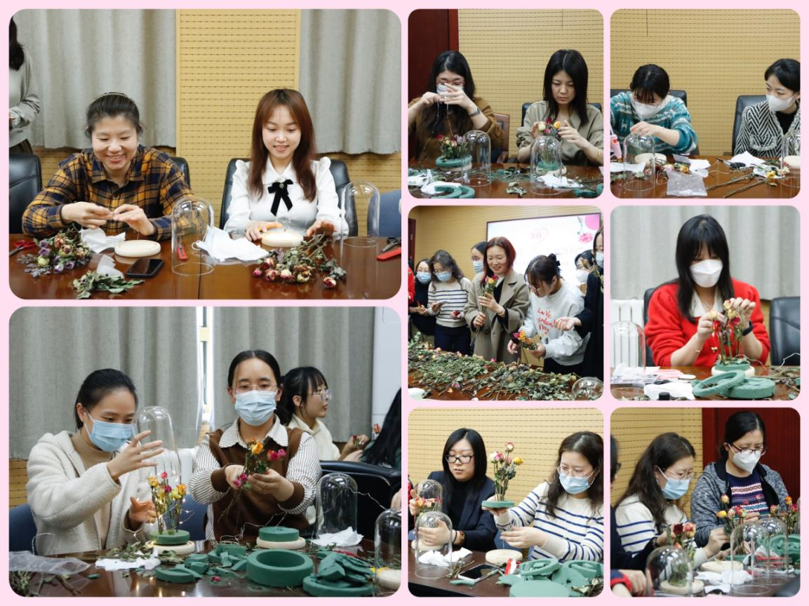 女职工们和自制永生花合影留念