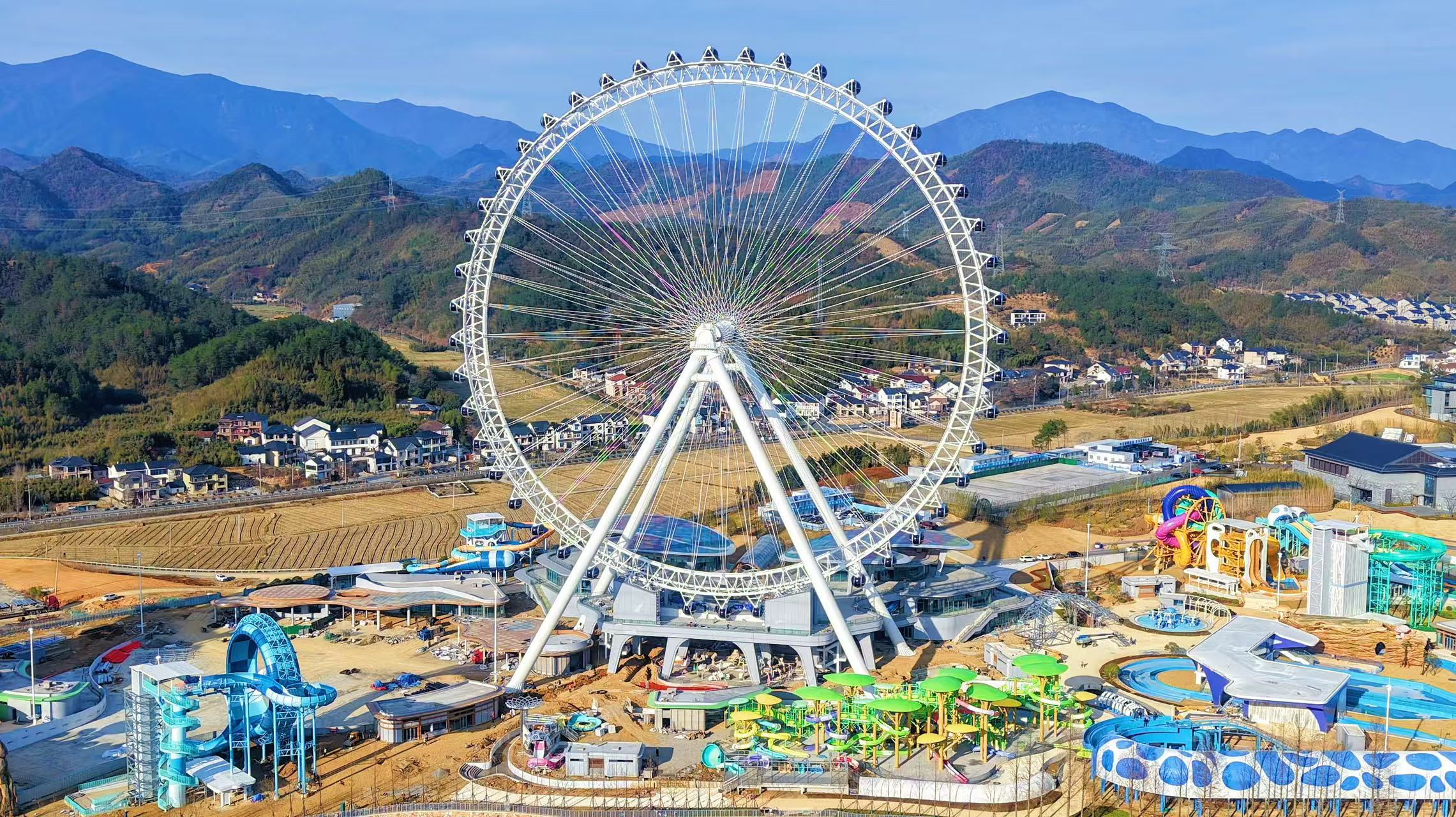 作为天目山未来谷——水世界的核心设施,该摩天轮总高达131.4米,象征“一生一世”爱情美好寓意,转轮采用全钢索结合三管桁架式结构,配备48个椭圆形高端轿厢,每个轿厢可容纳12人,单圈运转时间约30分钟,满载可同时接待576名游客建成后将为杭州市新地标,为带动长三角地区旅游发展作出积极贡献。